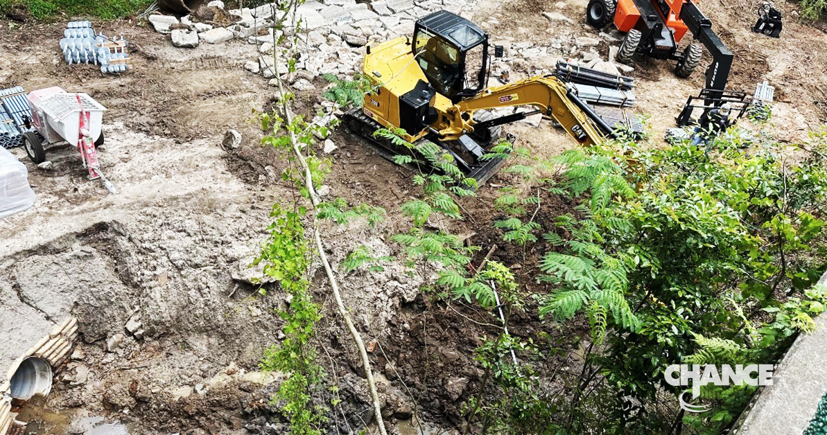 To install the piles, Camsyn Foundations used a Caterpillar 308 Mini Excavator with a Digga 13K ALS anchor drive head. A Chance digital torque indicator provided real-time torque monitoring and automatically transmitted logs to the field team. Average installation torque across the project was 10,500 ft-lb.
